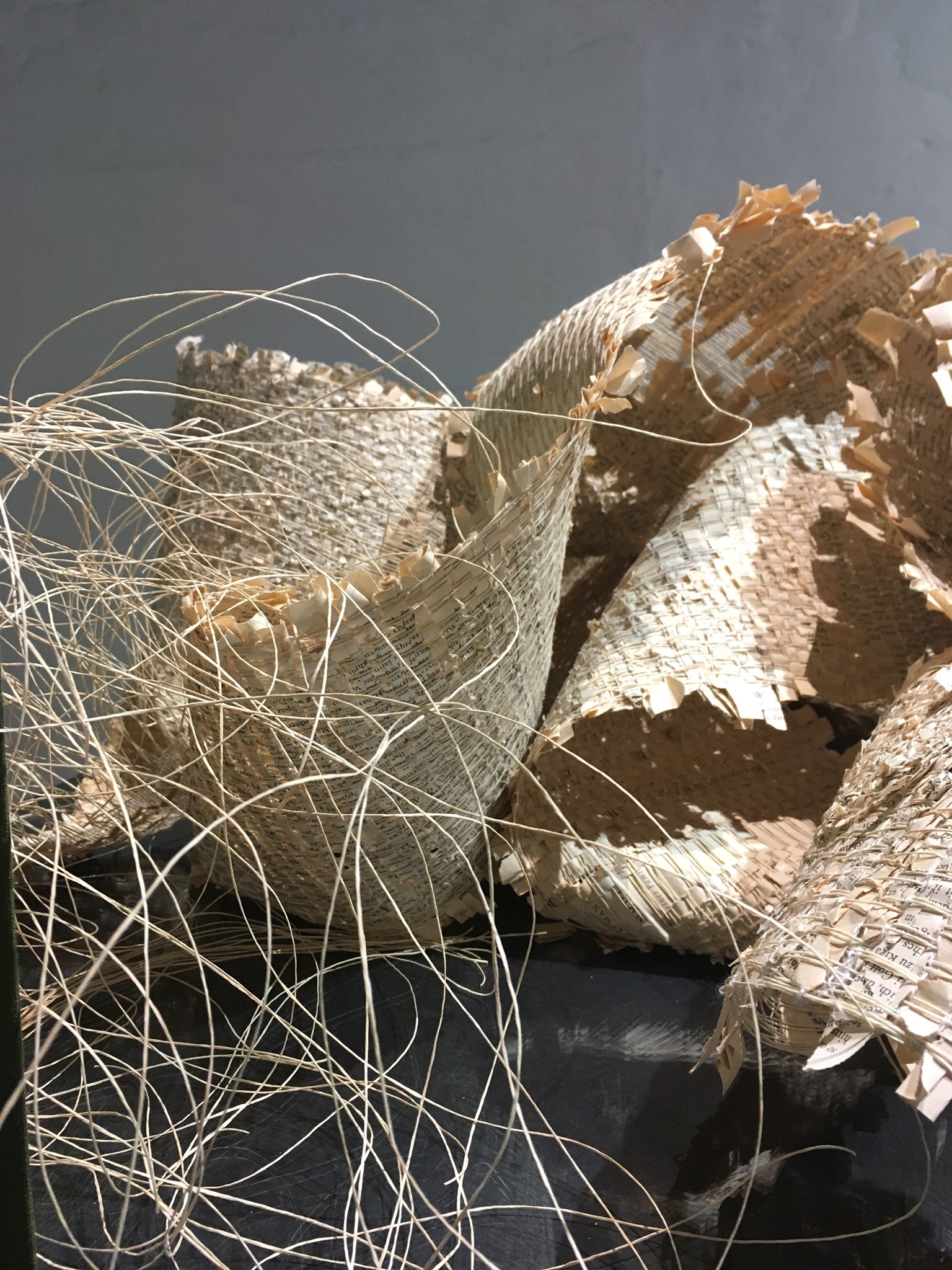 Hiltusen kudottu taidetekstiili pohtii kirjojen lyhyen eliniän ja nopean jätteeksi päätymisen lisäksi katoavaa kieli- ja kulttuuritaitoa, joka pahimmillaan voi johtaa sydämen sivistyksen ja inhimillisten kohtaamisten hiipumiseen ja erilaisuuden hyväksymisen häviämiseen.